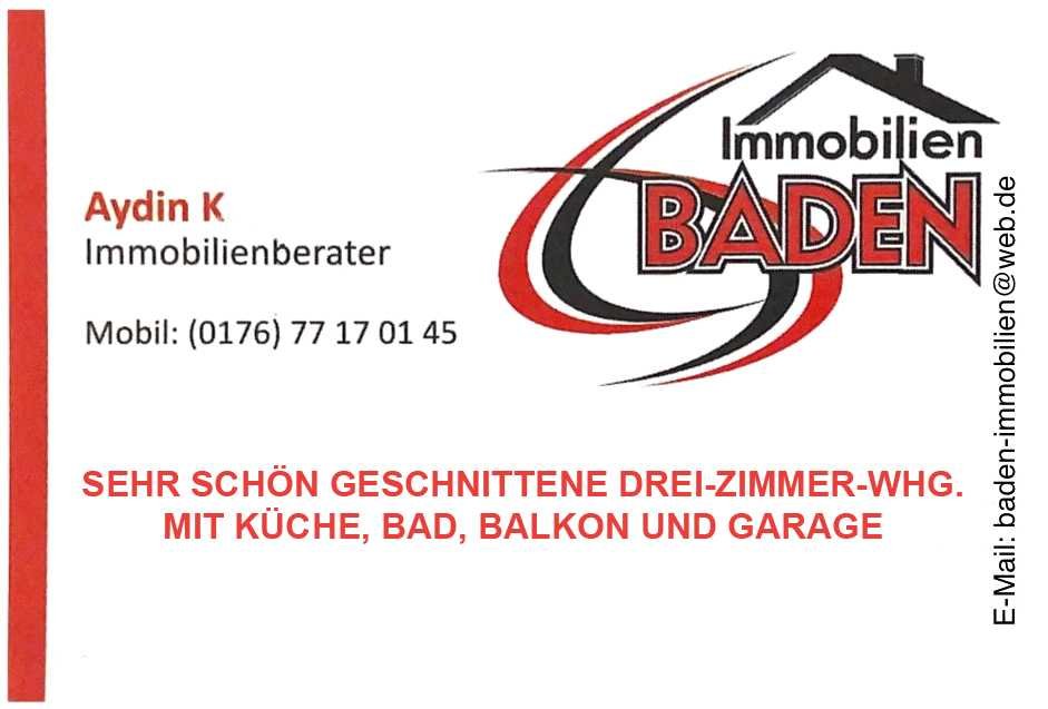 "SEHR SCHÖN GESCHNITTENE DREI-ZIMMER-WHG., KÜCHE, BAD, BALKON, GARAGE"