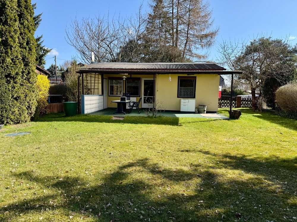 Zum Verkauf steht ein gepflegtes Wochenendhaus mit Grundstück in Germendorf, einem Ortsteil von Oranienburg. Das Grundstück hat eine Größe von ca. 385 m², bebaut mit einem Bungalow Bj. ca. 1991 (Typ B34). Der ca. 30 m² große Bungalow mit seiner ca. 22 m² großen Sonnenterrasse ist im Kaufpreis enthalten. Das Grundstück ist mit Abwasser und Strom erschlossen, die Wasserversorgung erfolg aktuell über einen Brunnen.