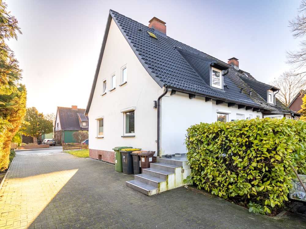 Die im Norden Schleswigs im Jahr 1955 errichtete Doppelhaushälfte liegt in ruhiger und dennoch zentraler Lage in einem attraktiven Wohngebiet. Der Stadtteil Schleswig Nord besticht durch seinen Mix aus Neubaugebieten und Altbestandsobjekten. Ideal und dadurch als Wohnlage sehr begehrt sind auch die Nähe zur Innenstadt sowie die gute Verkehrsanbindung. Die hier vorgestellte Immobilie mit ca. 100 m² Wohnfläche, verteilt auf 3,5 Zimmern, wurde von 2014 bis 2022 modernisiert und geschmackvoll hergerichtet. Hier können Sie direkt einziehen. Im Erdgeschoss befinden sich ein helles Wohnzimmer und eine in 2021 moderne, neu eingebaute geschmackvolle Küche. Im Flurbereich wurde darüber hinaus ein kleines Gäste-WC integriert. Das Erdgeschoss ist komplett mit Außenjalousien ausgestattet. Das Obergeschoss verfügt über ein gemütliches Schlafzimmer, ein Ankleidezimmer, ein weiteres Zimmer sowie ein in 2018 neu gestaltetes Duschbad. Sämtliche Räume sind mit Laminat bzw. Vinyl belegt. Die Immobilie ist voll unterkellert, verfügt über einen Dachboden und wird mit Gas beheizt. Die Fenster und die Haustür wurden 2021 erneuert. Das Dach wurde 2020 gereinigt und neu beschichtet. Das Grundstück ist 556 m² groß und verfügt über einen großen Garten in Nordwestlage. Darüber hinaus stehen eine Garage und ein Stellplatz zur Verfügung. Die Auffahrt und die Terrasse sind gepflastert. Aufgrund der Grundstücksgröße sind Ihren kreativen Gestaltungsmöglichkeiten im Garten keine Grenzen gesetzt. Hier können Sie sich nicht einsehbare idyllische Oasen schaffen. Insgesamt befindet sich diese Immobilie in einem gepflegten Zustand.