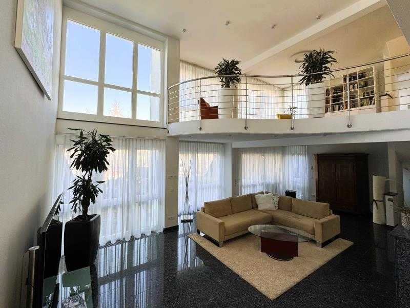 Auch beim Betreten des Hauses ist dieser exklusive und zugleich friedvolle Charakter des Hauses sofort spürbar. Hochwertigste Materialien wie Blue Pearl Granit und Vollholzparkett und großflächige bodentiefe Fensterelemente im ganzen Haus prägen den modernen Charakter und verleihen dem Haus zugleich eine warme, offene und einladende Atmosphäre. Die Wohnfläche von 290 m² ist architektonisch mit Bedacht konzipiert und so feinfühlig umgesetzt, dass man sich bei diesen außergewöhnlichen Dimensionen dennoch nicht verliert. Über mehrere, versetzte Ebenen werden die verschiedenen Bereiche des täglichen Lebens elegant miteinander verbunden. Licht- und Jalousien-Management mit Bussystemen tragen in jedem Bereich zu einer entsprechenden Stimmung bei. Im Jahr 2021/2022 wurde eine nahezu komplette Innensanierung durchgeführt, sodass auch weiterhin ein hoher Anspruch an das Wohnen erfüllt wird. Der harmonisch angelegte Garten vervollständigt das ausgewogene Wohnkonzept und macht das Objekt zu einem wahren Sehnsuchtsort.