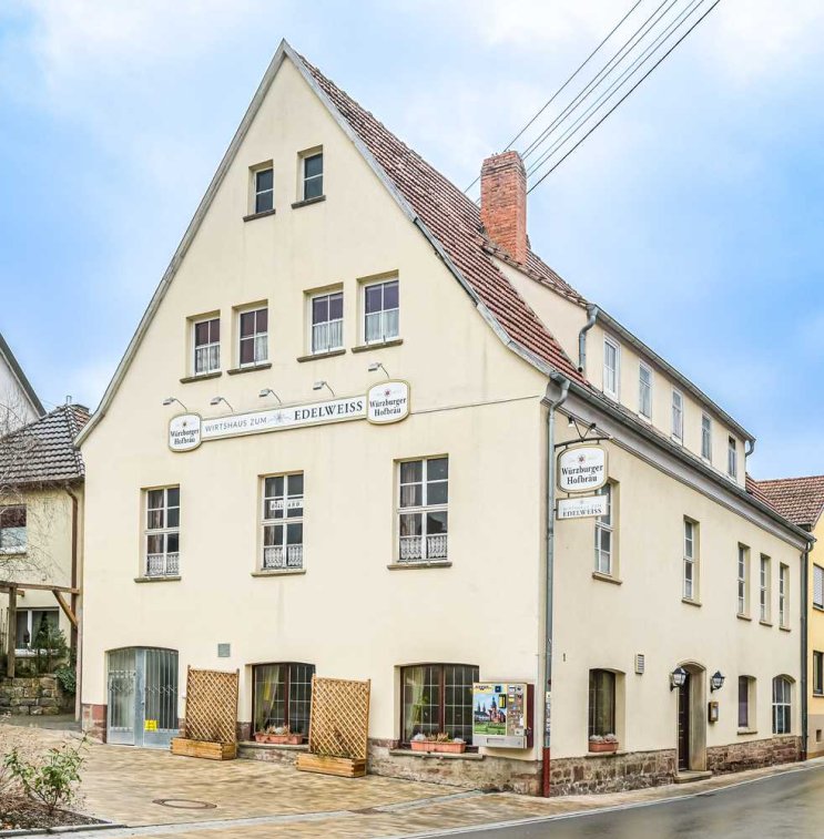 Im Erdgeschoss und 1. Obergeschoss befindet sich ein alteingesessenes Gasthaus, welches neu verpachtet oder selbst weiterbetrieben werden kann. Die Gaststube und Küche befinden sich im EG. Ein großer Festsaal, sowie weitere Räumlichkeiten für Familienfeiern oder Vereinssitzungen etc. im 1.OG. Der Gasthof wurde 2003 umfassend renoviert, auch Wasserleitungen und Elektrik.