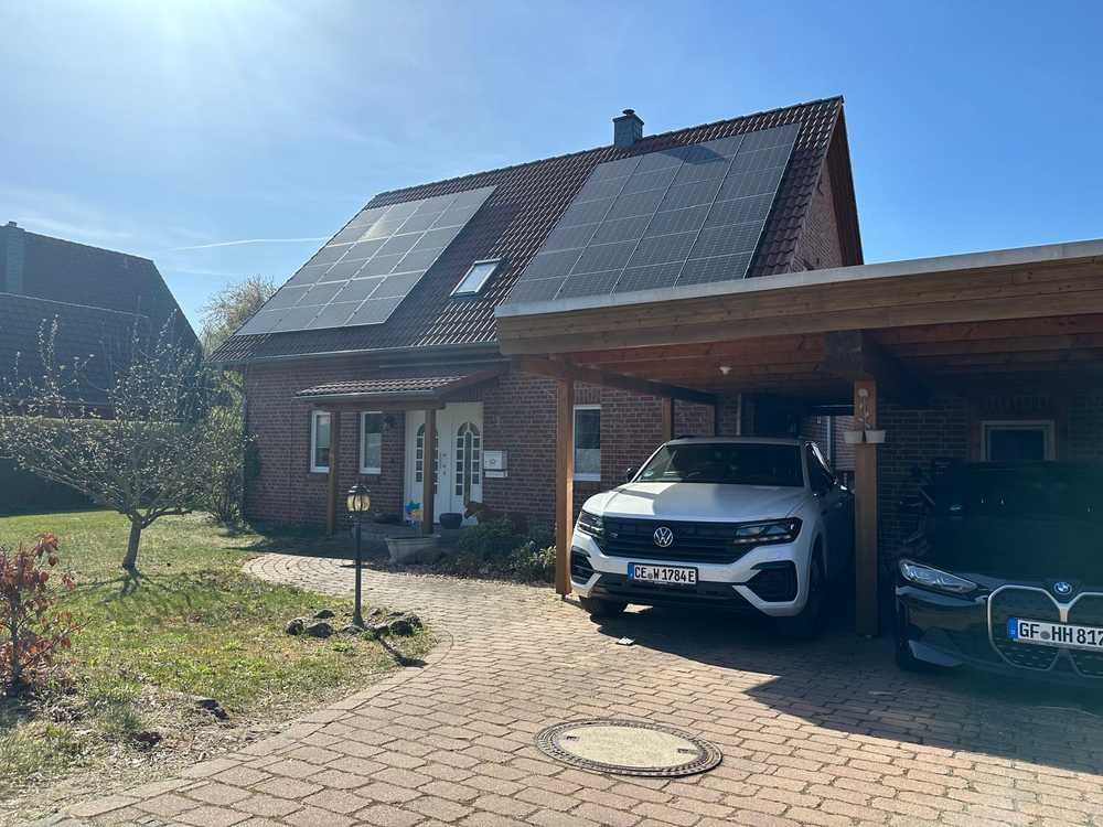 Die Immobilie verfügt über 157 qm Wohnfläche und ca. 102 qm Nutzfläche inkl. Carport und Geräteraum. Über den großzügigen Eingangsbereich gelangen Sie in den Wohn- Essbereich, welcher mit bodentiefen Fenstern und einer exklusiv ausgestatteten Luxusküche zum verweilen einlädt. Die große überdachte Terrasse mit Wasserspiel und Entspannungsecke erreicht man aus dem Wohnbereich genauso wie aus dem Essbereich. Ebenso findet sich im Erdgeschoss ein Arbeitszimmer, das Gäste WC sowie ein Hauswirtschaftsraum mit Einbauküche als Stau- und Lageraum. Ins erste Obergeschoss führt eine beleuchtete Buchentreppe in eine kleine Galerie mit Leseecke von welcher man zwei Kinder- oder Hobbyzimmer, ein Schlafzimmer und ein großzügiges Bad mit Wellnessdusche und großer eingelassener Badewanne erreicht. Neben den Wohnflächen verfügt diese Immobilie über einen nachträglich gedämmten Spitzboden mit großer Lagerfläche, ein Carport mit zwei Stellplätzen und angeschlossenem ausgebautem Werkraum, sowie einen großen Schuppen zum lagern von Holz, Garten- und Spielgeräten. Das Grundstück ist eingefasst von einer ausgewachsenen Rotbuchenhecke und der hintere Teil zusätzlich eingezäunt.