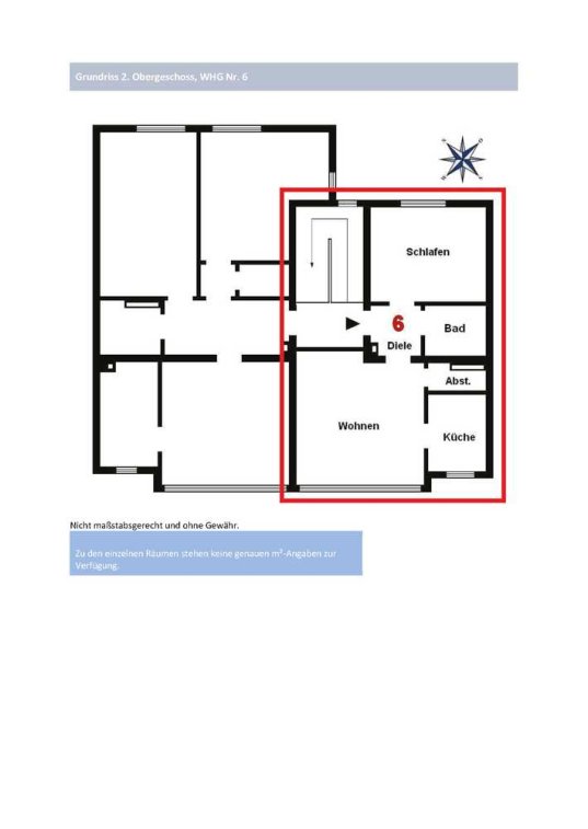 Die Wohnung mit ca. 46 m² Wohnfläche liegt im 2. Obergeschoss (ohne Aufzug).