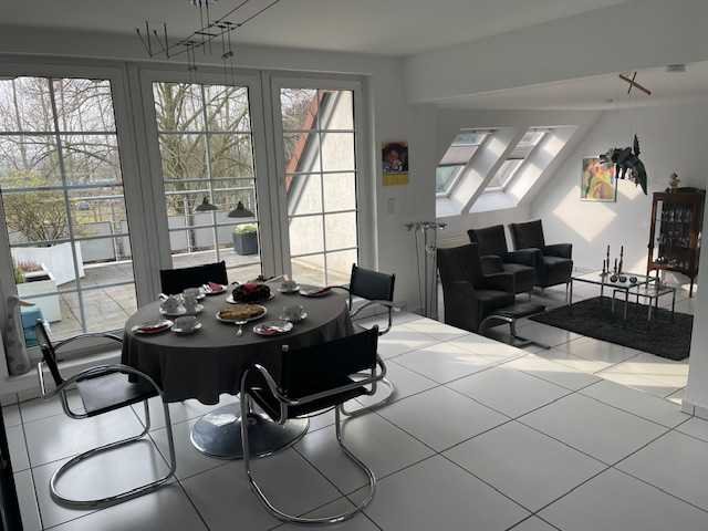 Diese schöne, große und helle Maisonette-Wohnung in der 2.&3. Etage mit Blick über Marl-Frentrob in Alt-Marl gelegen, zeichnet sich durch eine gehobene Innenausstattung aus. Im 2. Geschoss sind durchgängig weiße große Fliesen verlegt. Im Dachgeschoss ist der Bodenbelag frei wählbar. Die Wohnung kann ab sofort bezogen werden. Zu der Wohnung besticht durch ihre Großzügigkeit bereits nach dem Eingang. Der Wohn-Essbereich ist zudem noch durch zwei Stufen optisch ansprechend unterteilt. Bei der Planung für den Erstbezug der Wohnung wurde ein 3. Schlafzimmer zugunsten der erweiterten Großzügigkeit durch einen Architekten aufgelöst, welches jedoch jederzeit wieder eingebunden werden kann. Des Weiteren zählen neben zwei schönen Zimmern nicht nur ein Wannen-Badezimmer, sondern auch ein separates Gäste-WC mit Dusche. Der Balkon mit südöstlicher Ausrichtung lädt zum Entspannen und Sonne tanken ein. Mit dem zur Wohnung gehörigen Stellplatz finden Sie immer einen Parkplatz. Außerdem bietet ein Kellerraum praktischen Stauraum für Ihre Habseligkeiten.