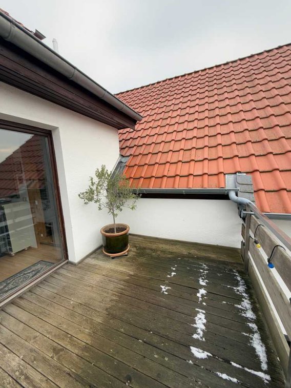 Zum Verkauf steht eine große Eigentumswohnung über zwei Etagen. Das Obergeschoss errichtet sich über eine schöne Diele im Eingangsbereich, wo von dort aus der Wohn/Essbereich, Küche und Dachterrasse erreicht werden kann. Genießen Sie auf der gemütlichen Dachterrasse schöne Sonnentage und Sonnenuntergänge.