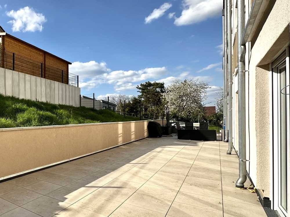 Der offene Wohn-Ess-Bereich mit einer Kochinsel bietet großzügigen Raum für gemeinsames Kochen und Entspannen. Die bodentiefen Fenster lassen viel Licht in den Raum strömen und führen direkt auf die wunderschöne Terrasse – ein wahrer Rückzugsort mit viel Platz für eine Sitzgruppe und Liegestühle, ideal für sonnige Stunden im Freien.