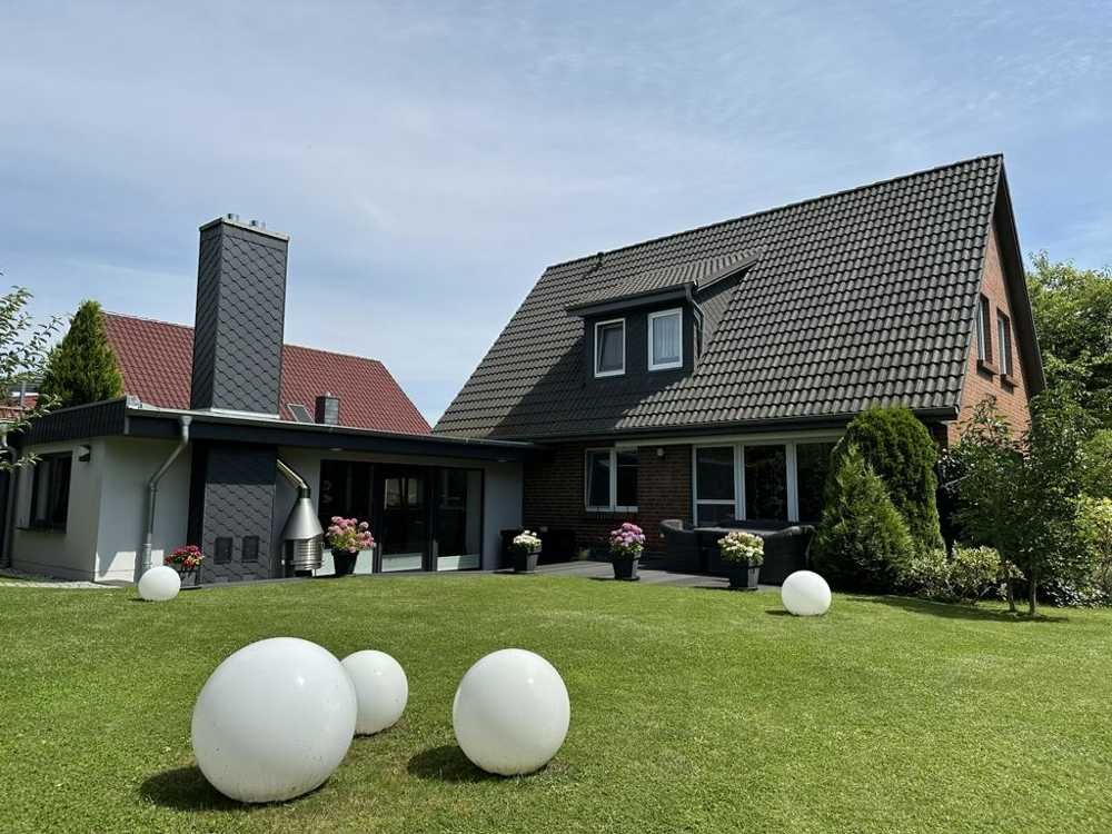 Verkauft wird ein sehr wertig und zeitgemäß ausgestattetes Einfamilienhaus mit modernem Anbau, Einliegerwohnungen im Dach- & Untergeschoss, mit Sauna, Büro und Nebengelass auf einem wunderschönen, gepflegten Grundstück in ruhiger Wohngegend.