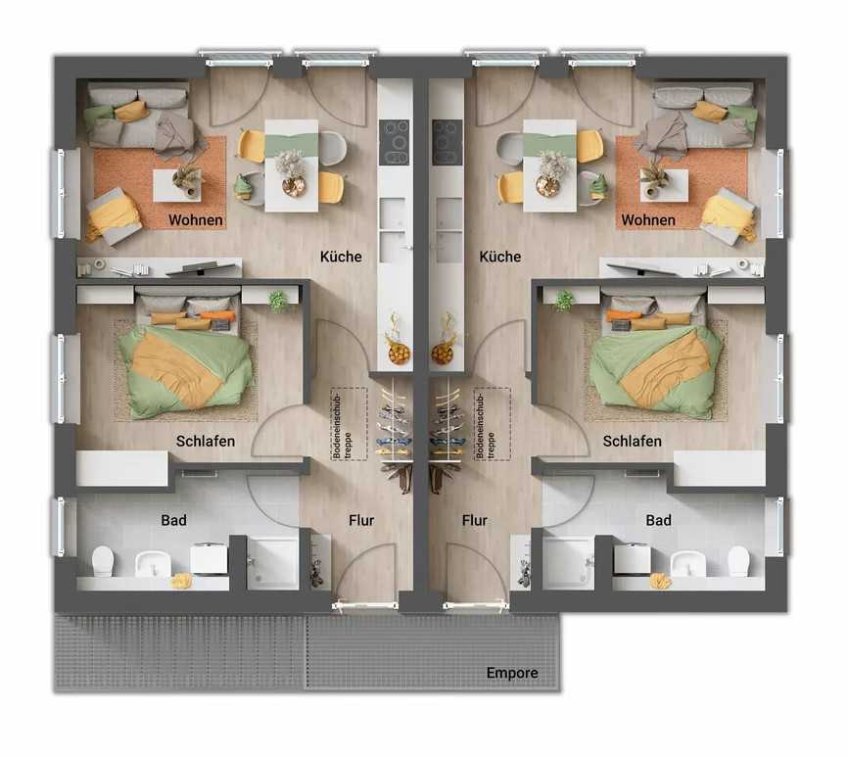 Wer sich entscheidet, das Flair 180 Trio zu bauen, kann die Wohnungen zu verschiedenen Zwecken nutzen: Mehrgenerationenwohnen, Investition, Wohnen mit Freunden oder Bekannten.