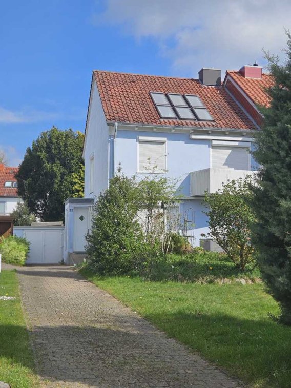 Es wird von privat, ohne Makler, verkauft 1 Doppelhaushälfte mit einer Wohnfläche von ca. 110 m², mit 2 Gartenbereichen und 1 Einzelgarage, zentral und ruhig gelegen im Quellental Pinneberg. Die Grundstücksgröße beträgt 427 m². Das vollunterkellerte Haus aus dem Baujahr 1955 erfuhr Anfang 1990 eine Sanierung nach damaligen Standards mit Austausch der Wasserleitungen, Elektrik, Ausbau des Dachgeschosses und teilweiser Neugestaltung des Grundrisses. 2001 wurde eine Niedertemperatur-Gastherme eingebaut, die Einbauküche ist aus 2004. Das Haus ist doppelverglast, die Wohnzimmerfront 2021 dreifachverglast. Alle Fenster sind mit aufgesetzten, teilweise elektrischen Rollläden versehen. Es wurde immer wieder teilersetzt und punktuell der Standard gehoben, allerdings ohne Gesamtkonzept. Das Haus verlangt jetzt eine kundige Hand und zu einem mittelfristigem Zeitpunkt eine Sanierung. Die energetische Situation ist derzeit hybrid gestaltet, heißt ein Kamin, der betrieben werden darf, wurde die vergangenen Winter zum Heizen mit verwendet und reduzierte den Verbrauch von 27.000 kWh/a auf unter 10.000 kWh/a bei Nutzung durch 1 Person. Der Energieausweis wird aktuell erstellt. Die Dach- und Garagenfläche ist ideal für PV Lösungen. Glasfaser liegt im Haus.