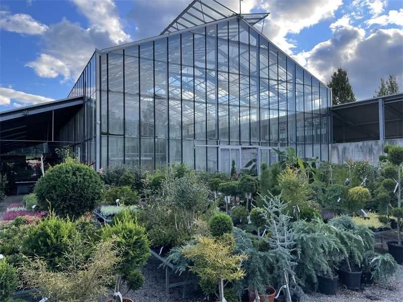 Die eingeschossigen Gewächshausbereiche verfügen über eine Höhe von ca. 6,40 m bis ca. 8,80 m und sind durch Glaswände in beheizte und nicht beheizte Räume unterteilt. Das Anwesen verfügt noch über Sozialräume, Toiletten und einen Technikraum. Alle Hallenabschnitte sind untereinander verbunden.