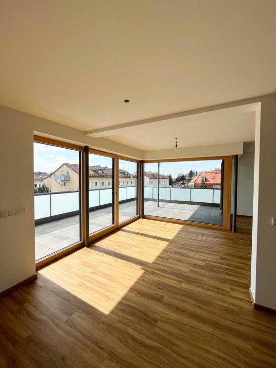 Wir bieten Ihnen mit dieser tollen Dachgeschosswohnung eine 4-Zimmer-Wohnung mit einer ca. 57 m² großen Dachterrasse an. Die Dachgeschosswohnung - aufgrund des modernen Flachdaches ohne Schrägen und somit mit perfekten Stellmöglichkeiten - ist aufgrund ihres modernen Schnittes unterteilt in einen Wohnbereich und einen privaten Schlafbereich. Sie finden hier 3 Schlafräume (Elternschlafzimmer mit Ankleide), 2 Badezimmer, einen Abstellraum sowie einen großzügigen Wohn-Essbereich mit einer offenen, aber dennoch von der Couch nicht einsehbaren, Küche vor. Genießen Sie den modernen Charme, den Ihnen diese Wohnung bietet.