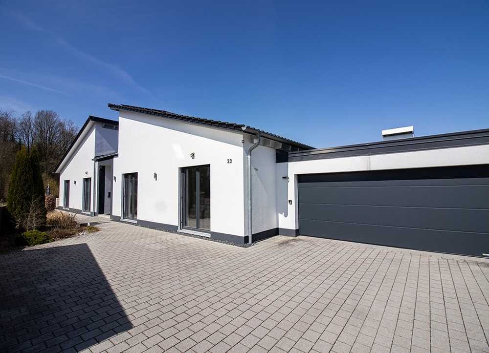 Dieses moderne Architektenhaus aus dem Jahr 2013 überzeugt mit besonderer Architektur und durchdachter Raumaufteilung auf einer Ebene. Insgesamt 224 m² Wohnfläche auf dem 694 m² großen Grundstück eröffnen naturnahes Wohnen in ruhiger Lage mit luxuriösem Charme und exklusivem Ambiente.