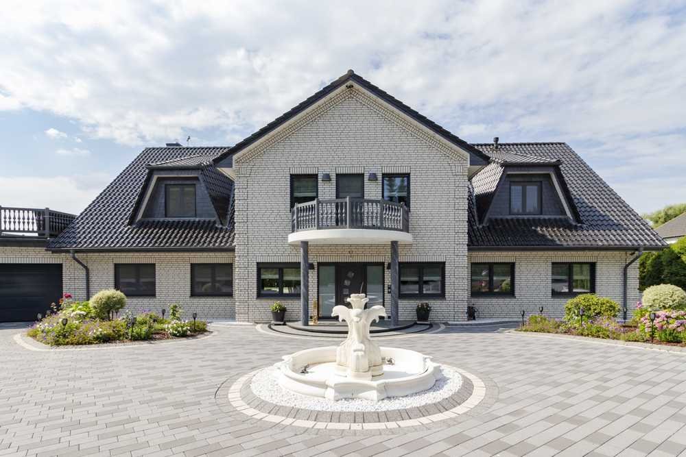 Die eigene Auffahrt zum Haus empfängt Sie repräsentativ mit dem Brunnenrondell und den liebevoll angelegten Zierbeeten.