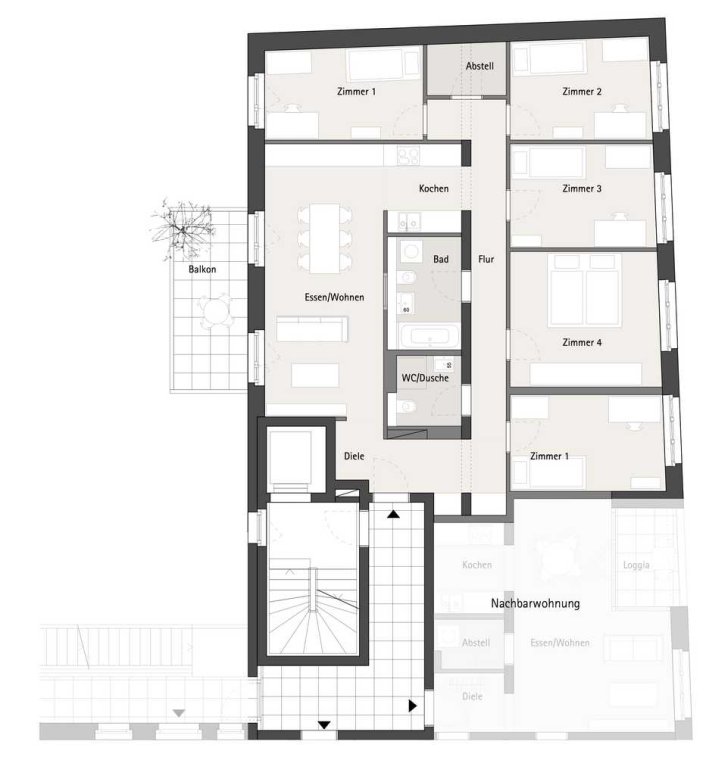 Die Grundrisse mit 1 bis 6 Zimmern bieten eine ausgewogene Mischung aus Großzügigkeit und pragmatischer Nutzbarkeit. Die meisten Einheiten sind durch den Baukörper durchgesteckt.