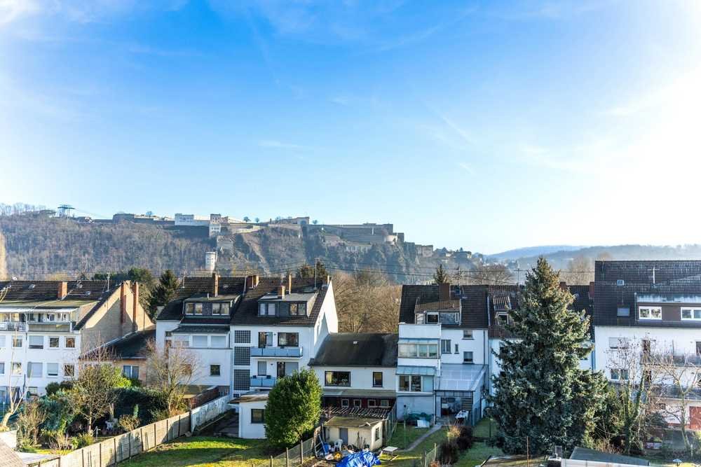 Die Wohnung erstreckt sich über insgesamt fünf Zimmer.Ein großer und hellen Wohn- und Essbereich bildet den Mittelpunkt der Wohnung und wird durch einen angrenzenden Balkon mit unvergleichlichem Blick auf die Festung Ehrenbreitstein, die Dächer der Altstadt und grüne Innenhöfe erweitert. Zwei Bäder ergänzen diese Wohnung zu einer schönen und großzügigen Familienwohnung. Die Lage im obersten Geschoss sorgt nicht nur für eine exklusive Aussicht, sondern auch für ein besonders privates und ruhiges Wohngefühl.