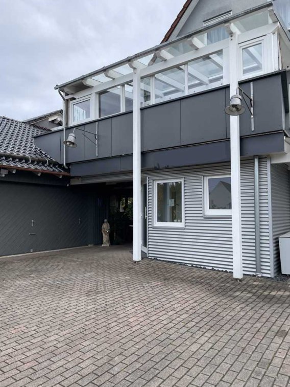 Das Obergeschoss überzeugt mit einer gemütlichen Wohnküche und direktem Zugang zur großzügigen Sonnenterrasse, einem Abstellraum, einem weiteren Gäste-WC sowie einem lichtdurchfluteten Wohnzimmer mit Zugang zum Garten. Der Wohnbereich wird durch einen charmanten Wintergarten erweitert, der über eine große Glasschiebetür verfügt – perfekt für helle, warme Tage. Bei Bedarf lässt sich der Wintergarten durch eine Holzfalttür vom Wohnzimmer abtrennen.