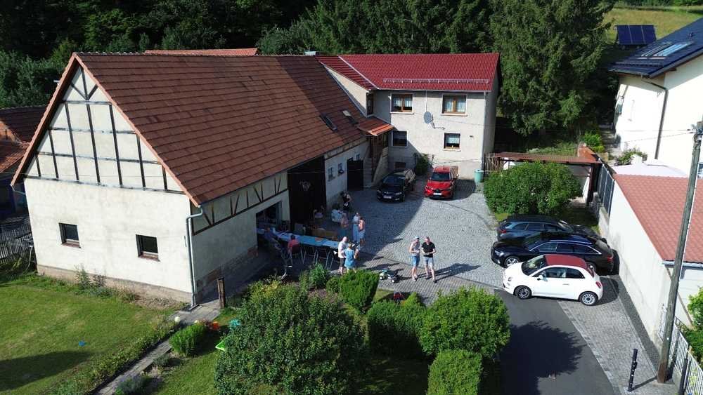 Ein ruhiges und sonniges Plätzchen – dieser Aussage wird das Haus auf jeden Fall gerecht. Es ist viel Platz für die Großfamilie oder Generationswohnen vorhanden. Es wurde massiv mit Kartona-Mauerwerk errichtet, zum Teil über der Scheune erweitert und ist unterkellert. Die Scheune schließt sich im L-Stil an das Gebäude an. Hier gibt es weitere Bereiche für Hobby oder Tierhaltung. Besonders hervorzuheben ist das große Gartengrundstück, wo Kinder Trampolin hüpfen können; die überdachte Terrasse, der gepflasterte Hof und die ruhige Randlage im Ort. Kurz gesagt – ein Wohnfühlort.