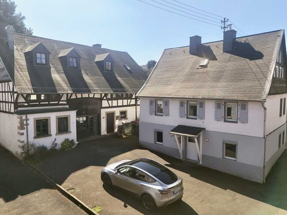 Durch die hohen Decken, die überwiegend offene Raumgestaltung, die Natursteinwände im Erdgeschoss und das imposante Sichtfachwerk entsteht ein faszinierendes Ambiente zum Leben und/oder Arbeiten.