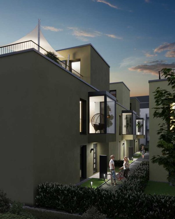 Die abwechslungsreichen Außenflächen unterstreichen den einzigartigen Charakter des Hauses: Im Garten lädt eine ruhige Terrasse zum Durchatmen ein, während die beiden Dachterrassen – auf unterschiedlichen Ebenen gelegen – mit herrlichem Ausblick und Abendsonne begeistern. Möglichkeiten zur Dachbegrünung und Urban Gardening sowie eine moderne Photovoltaikanlage unterstreichen den nachhaltigen Anspruch des Hauses.