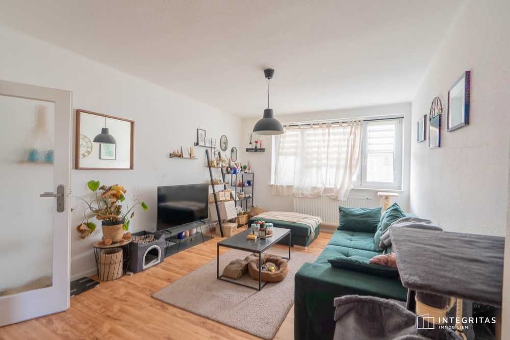Die Wohnung selbst teilt sich in ein Wohnzimmer, ein Schlafzimmer, ein Kinder-/Arbeitszimmer, eine Küche samt Einbauküche, sowie ein Badezimmer mit