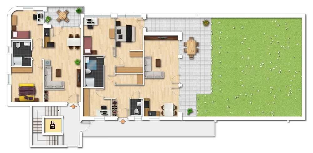 Durch die verschiedenen, gut durchdachten Grundrisse erfüllen sich hier die Wünsche von Jung und Alt, Paaren und Familien. Dass das Gebäude über einen Aufzug und alle Wohnungen über einen barrierearmen Zugang verfügen, ist ein weiterer Vorteil.