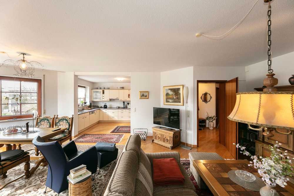 Das Herzstück der Wohnung bildet der weitläufige Wohn-/Essbereich mit offener Küche – auf rund 43 m² ist hier genug Platz für das tägliche Miteinander. Ein lichtdurchfluteter Erker im Essbereich schafft eine helle und freundliche Atmosphäre, die zum gemeinsamen Frühstück mit den Kindern oder dem Kaffeekränzchen mit den Enkeln einlädt.