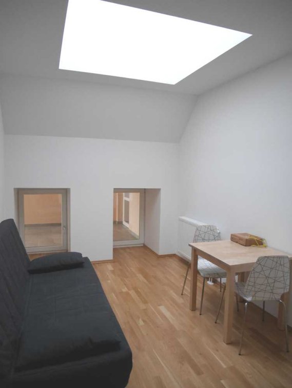 Im Wohnraum wurde Parkett verlegt. Abstellkammer Küche und Bad sind gefliest.