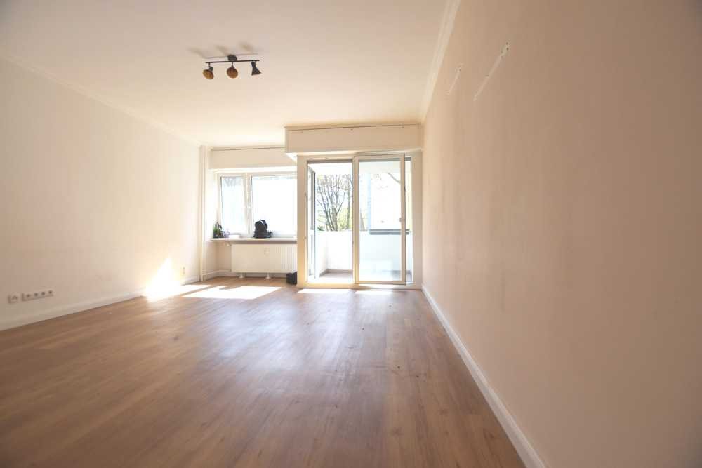 Das großzügige Wohnzimmer mit Zugang zum Balkon ist lichtdurchflutet und bietet viel Raum für individuelle Gestaltung. In der gesamten Wohnung wurde hochwertiges Parkett verlegt, während die Küche mit stilvollen und pflegeleichten Steinplatten ausgestattet ist – beides verleiht der Wohnung eine elegante und zugleich wohnliche Note.