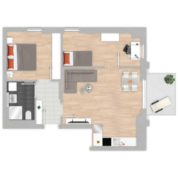 Die Wohnungen überzeugen durch moderne Architektur, großzügige Raumaufteilung und viel Platz zur individuellen Gestaltung. Große Fenster sorgen für lichtdurchflutete Räume und ein angenehmes Wohngefühl.
