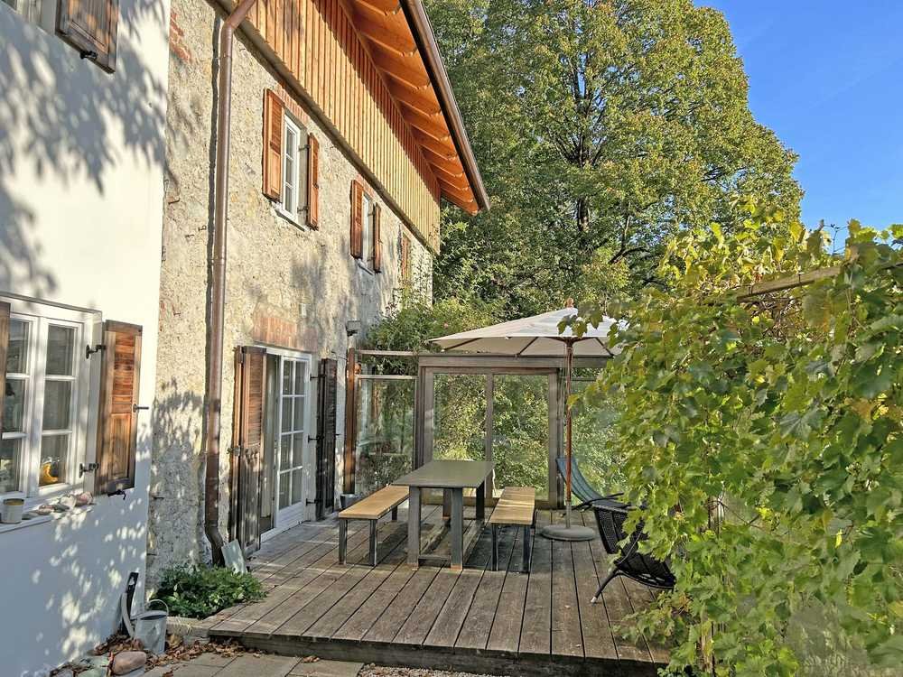 Das topsanierte Landhaus liegt leicht erhöht ohne Nachbarschaft im Außenbereich von Unterwössen, direkt angrenzend zu Marquartstein. Charaktervoll präsentiert sich der Baustil der Jahrhundertwende mit dem schön eingewachsenen Garten samt Einfriedung zur Straße. Im Innenbereich profitieren Sie von 50 cm Wandstärken und einer geschmackvollen Sanierung unter Beibehaltung ursprünglicher Elemente. Die großzügige Wohnfläche von 340 m² verteilt sich auf drei Etagen, davon wurde das Dachgeschoss mit ca. 120 m² als Loft mit Anschlüssen für Bad, Küche und Fußbodenheizung ausgebaut. Wenn gewünscht, kann das Dachgeschoss als getrennte Einheit bewohnt werden, der genehmigte Bauplan sieht eine Außentreppe als separaten Zugang vor.