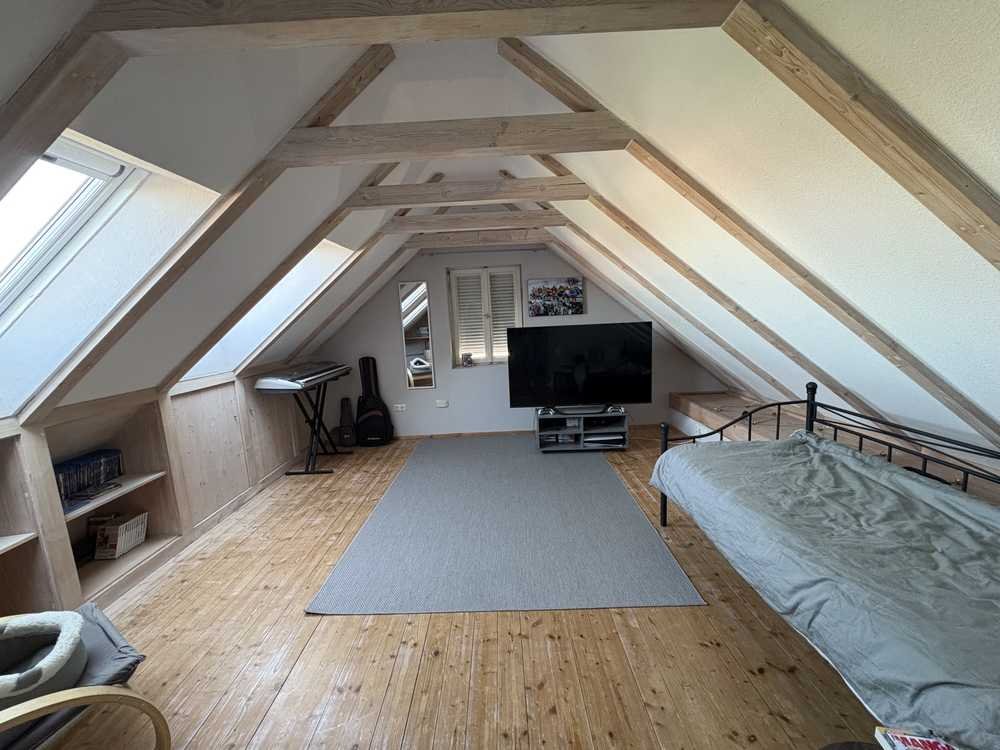 Im Erdgeschoss befinden sich ein großzügiger Wohnbereich mit Zugang zur sonnigen Terrasse und dem schön angelegten Garten, eine separate Küche mit Essbereich sowie ein Gäste-WC. Das Obergeschoss bietet Platz für zwei Schlafzimmer und ein Tageslichtbad. Im 2. Obergeschoss befindet sich ein voll ausgebautes Zimmer das sowohl als Schlafzimmer als auch als Büro dient .