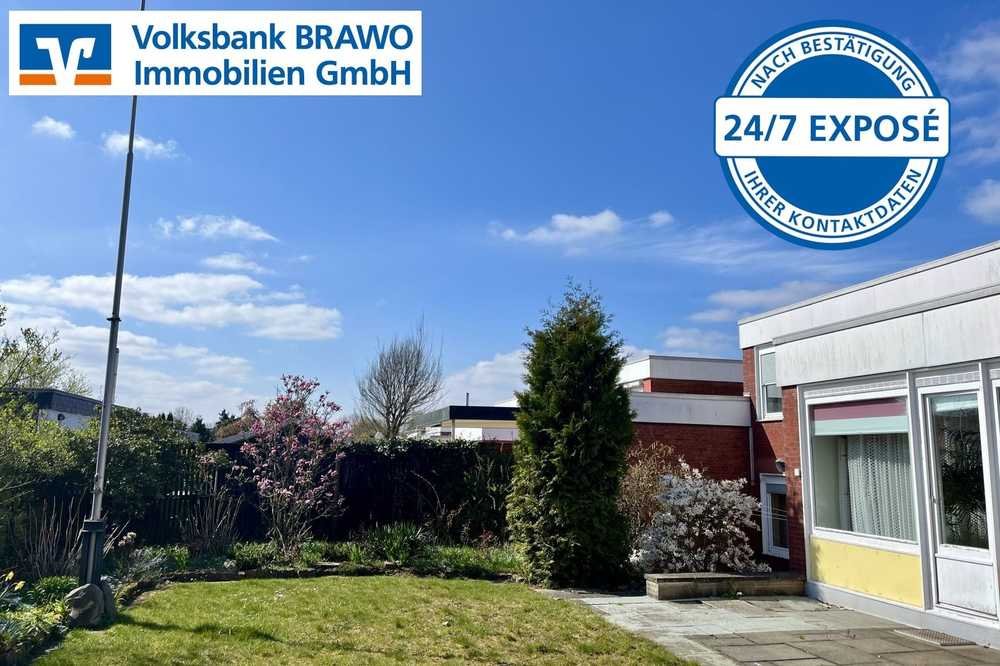 Dieses charmante Reihenendhaus aus dem Baujahr 1966 bietet eine Wohnfläche von ca. 114 m² auf einem Erbpachtgrundstück von 342 m². Der Eingangsbereich empfängt Sie mit einem kleinen Windfang. Links befindet sich die Küche, während Sie geradeaus in das helle Wohnzimmer gelangen. Einige Stufen führen vom Eingangsbereich hinunter in die Diele, von der aus Sie Zugang zur Terrasse haben. Auf dieser Ebene finden Sie zudem ein weiteres Zimmer, ein Badezimmer mit Dusche sowie einen praktischen Kellerraum.