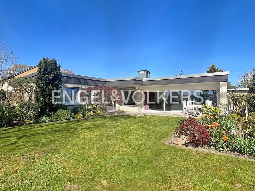 Dieser hochwertige Bungalow aus dem Jahr 1970 bietet rund 161 m² Wohnfläche auf einem ca. 997 m² großen Grundstück und verbindet Großzügigkeit mit Charme. Die Immobilie wurde fortlaufend modernisiert und präsentiert sich in einem äußerst gepflegten Zustand. Ein offener Wohn- und Essbereich mit Zugang zur Sonnenterrasse und dem liebevoll angelegten Garten schafft ein helles, einladendes Ambiente. Zwei Schlafzimmer, ein Arbeits- und ein Ankleidezimmer bieten vielseitige Nutzungsmöglichkeiten. Das Tageslichtbad mit Dusche und Wanne sowie ein Gäste-WC sorgen für modernen Komfort. Die stilvolle Diele mit Kamin setzt einen wohnlichen Akzent. Das wohnlich ausgebaute Untergeschoss erweitert den Raum um flexible Bereiche für Büro oder Hobby, ergänzt durch eine Sauna, Duschbad und Hauswirtschaftsfläche. Eine Garage für bis zu zwei Fahrzeuge mit zusätzlichem Stauraum rundet das Gesamtbild ab. Ein Zuhause für alle, die Stil, Komfort und Freiraum lieben.
