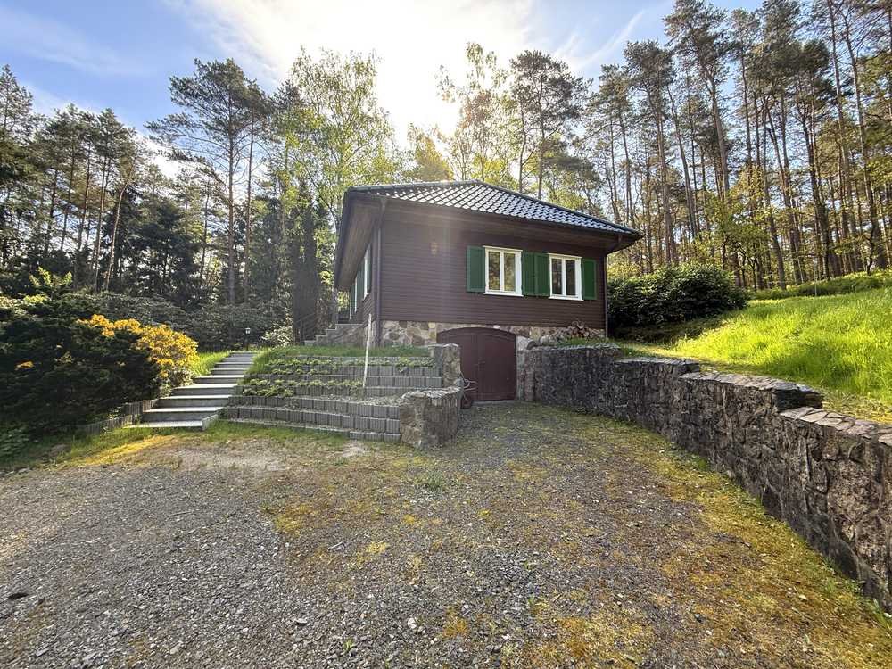 Angeboten wird Ihnen ein charmantes Holzhaus auf einem etwa 4.573 m² großen, naturbelassenen Grundstück direkt am Waldrand.
