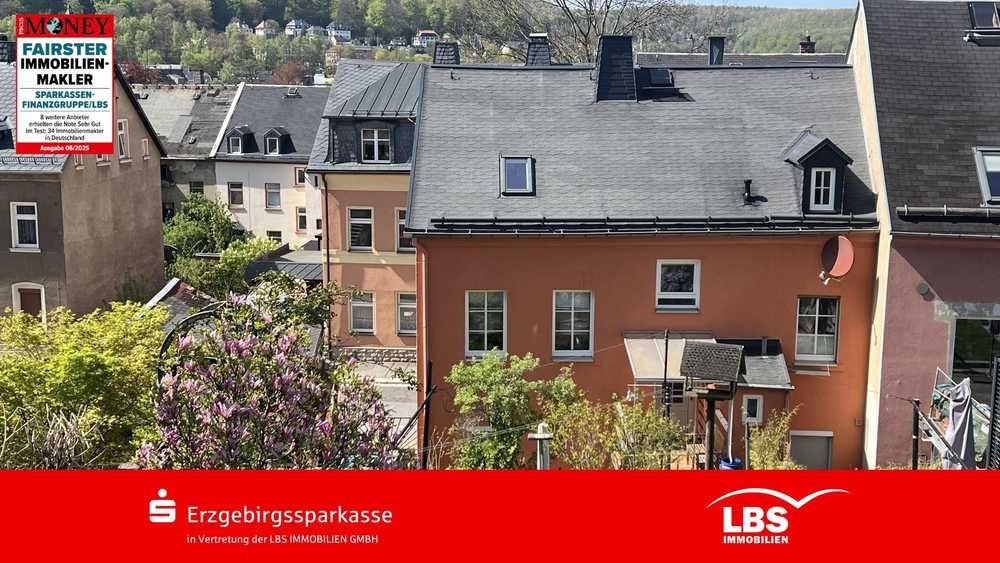 In ruhiger zentraler Lage befindet sich dieses Reihenendhaus als Einfamilienhaus mit Einliegerwohnung. Die ELW im Erdgeschoss hat 2 Zimmer, Küche und Bad. Im Ober- und Dachgeschoss befindet sich die Hauptwohnung mit Wohn-, Schlaf-, 3 Kinderzimmern, Küche und dem Bad im Dachgeschoss. Das Haus ist teilweise unterkellert. Im nach SO terrassenförmig angelegten Garten kann man sich vom stressigen Alltag gut erholen. Das Haus wurde ab 2002 sukzessive modernisiert und ist an die öffentlichen Versorgungsmedien angeschlossen.
