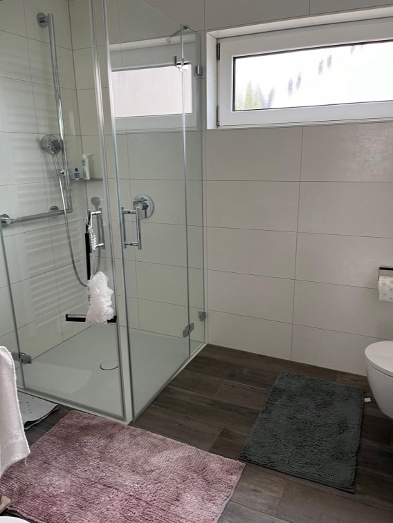 Das 2021 modernisierte Badezimmer ist ausgestattet mit einer bodentiefen Dusche, einem Waschtisch, sowie einem WC. Ebenso verfügt es über ein Fenster, das Tageslicht hereinlässt – ein echter Vorteil, der für eine angenehme Atmosphäre sorgt.
