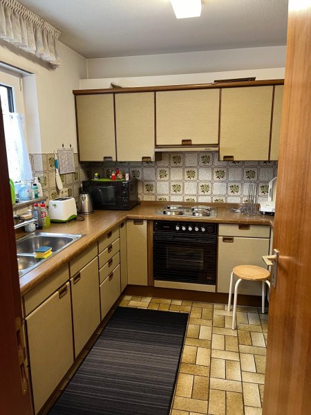 Zusätzlich gibt es im EG ein Gäste-WC, das Ihren Besucher/innen den Aufenthalt noch komfortabler macht. Die baujahrtypische Einbauküche ist zwar in die Jahre gekommen, dennoch funktional.