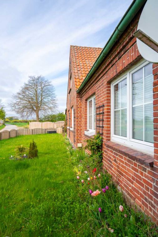 Das Grundstück ist großzügig angelegt und liebevoll begrünt – ein Paradies für Gartenliebhaber und Naturliebhaber. Ergänzt wird das Angebot durch ein idyllisches Nebengebäude in rotem Klinker, das sich hervorragend als Schuppen oder Lagerraum eignet.