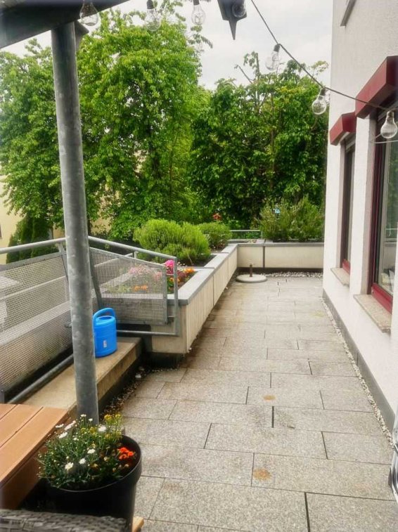 Das Highlight der Wohnung bilden der ca. 25,61 m² große, umlaufende Balkon (Nutzfläche) in optimaler Süd-Westausrichtung sowie der angrenzende Gartenanteil mit ca. 44 m², auf welchem Sie die Sommerabende genießen können (Westausrichtung).