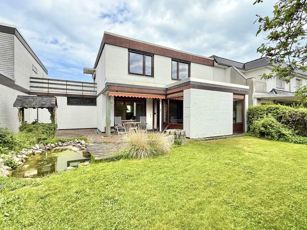 Zum Verkauf steht ein ansprechendes Reihenmittelhaus/Kettenhaus, welches im Jahr 1974 erbaut wurde und das sich durch eine zeitlose Architektur auszeichnet, die dem Bauhausstil ähnlich ist. Das Haus verfügt über eine großzügige Raumaufteilung und helle Räumlichkeiten, die sich perfekt für Paare mit Platzbedarf oder Familien mit ein bis zwei Kindern eignen. Erholung und Entspannung bieten zwei große und sonnige Terrassen sowie eine schöne Gartenfläche mit kleinem Teich.