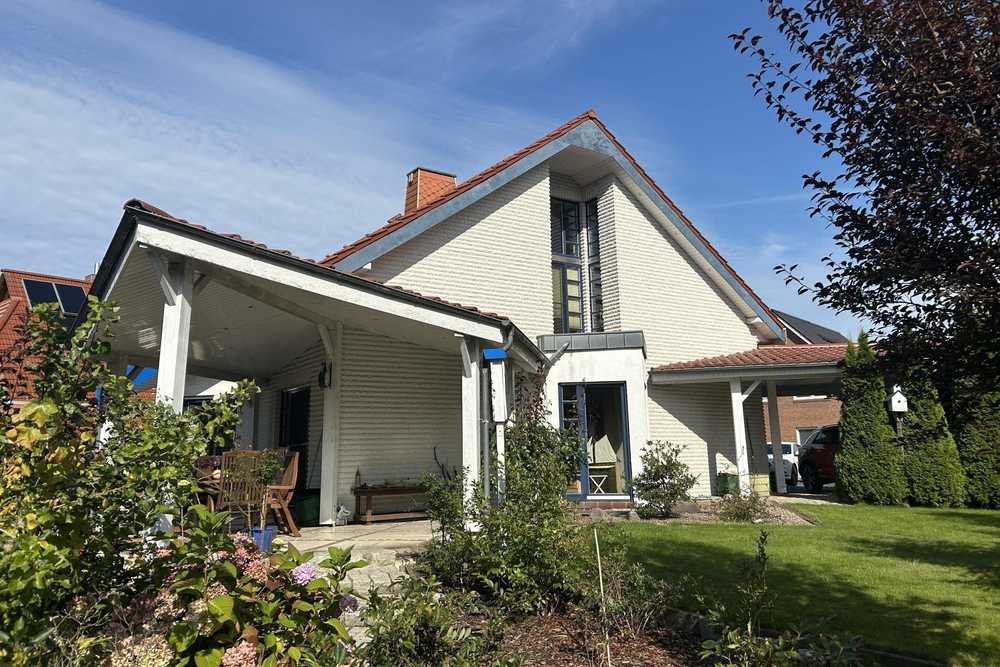 Zum Verkauf steht dieses besondere Einfamilienhaus am Ende einer ruhigen Siedlung im Bremerhavener Ortsteil Schierholz. Das Haus wurde ca. 1994 erbaut und liegt auf einem ca. 902 m² großen Eckgrundstück. Das Haus wird noch in diesem Herbst mit einer neuen Wärmepumpe ausgestattet, die Ihnen die Sorgen um das Heizen der Zukunft abnimmt. Weiteres Highlight des Hauses sind die 4 Glaserker, die am Badezimmer, dem Windfang sowie am Wohnzimmer für besonders viel Licht sorgen und einen einzigartigen Blick in den Garten ermöglichen. Das Wohnzimmer bietet Ihnen knapp 47 m² Wohnfläche. Für angenehme und gemütliche Wärme sorgt der wasserführende Kaminofen, der zusammen mit der neuen Wärmepumpe ein nachhaltiges Heizsystem darstellt. Im Erdgeschoss finden Sie darüber hinaus das Badezimmer mit Dusche und Badewanne sowie die Küche, ein Gäste WC und ein individuell nutzbares Zimmer. Im ausgebauten Dachgeschoss liegen derzeit 2 weitere Zimmer, ein Duschbad sowie eine offene Galerie mit 4 Balkonen über den Erkern. Das offene Zimmer kann ohne großen Aufwand in ein weiteres Schlafzimmer umgewandelt werden und ein Schlafzimmer zur Küche gemacht werden, sodass dieses Haus auch als Mehrgenerationen- bzw. Zweifamilienhaus bewohnt werden kann. Alle Anschlüsse, insbesondere zur Küche, sind auch im zweiten Geschoss vorbereitet. Highlight des Dachgeschosses sind die Fenster und Decken, die bis unter das Dach für besonders große Räume sorgen. Insgesamt stehen Ihnen ca. 167 m² Wohnfläche zur Verfügung, die durch weitere Nutzfläche im Vollkeller ergänzt wird. Hier finden Sie den Heizraum, eine Werkstatt, Waschküche und Hobbyraum. Aus dem Keller gelangen Sie komfortabel in den Garten. Die Einbauküche rundet das Angebot ab und ist im Kaufpreis enthalten. Suchen Sie ein besonderes Zuhause für sich und Ihre Familie? Dann kontaktieren Sie mich für eine Besichtigung.