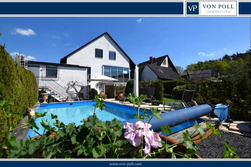 Das freistehende Einfamilienhaus zeichnet sich durch eine solide Bauweise, eine gehobene Innenausstattung und besondere Außenanlagen aus. Das Wohnhaus wurde 1975 in Massivbauweise auf einem ca. 1.344 m² großen, sonnigen Grundstück mit Doppelgarage errichtet und bietet eine Wohnfläche von insgesamt ca. 265 m². Beheizt wird das Wohngebäude mit einer 2010 installierten Gaszentralheizung. Der Kachelofen im Wohnzimmer verbreitet in den Wintermonaten angenehme Wärme und gemütliche Atmosphäre. Ein aktueller Energieausweis liegt vor. Der Bauherr hat auf solide Bauweise geachtet, hochwertige Materialien eingesetzt und das Anwesen über die Jahre stetig modernisiert. Die Architektur des Hauses ist klassisch und zeitlos. Der große Wellnessbereich im Untergeschoss lädt zum Entspannen ein und bietet Ihnen u. a. einen Innenpool mit Gegenstromanlage, eine Infrarotkabine und eine Dusche. Weiterhin im Unterschoss neben dem Technikraum zwei Lagerräume, ein Partyraum, eine Küche, ein weiteres Duschbad, ein Schlafzimmer, eine Waschküche und ein Wintergarten mit Ausgang in den Garten.
