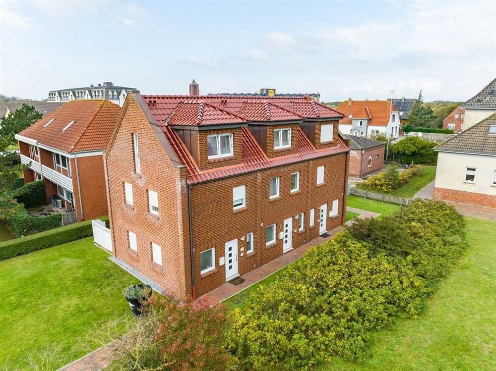 Das elegant gestaltete Reihendhaus wurde 2012 erbaut. Auf ca. 80 m² ist hier eine moderne und harmonische Ferienimmobilie entstanden. Verteilt auf drei Etagen stellt sie vier Zimmer, zwei Bäder, ein Gäste-WC sowie ein Abstellraum zur Verfügung. Das Erdgeschoss überzeugt mit seinem eindrucksvollen Wohn-, Ess- und Küchenbereich. Eine besondere Leichtigkeit hat der Raum den großflächigen Fensterfronten zu verdanken, die zudem für den Zugang zu der traumhaften Sonnenterrasse mit Westausrichtung sorgen. Hier lässt sich der Abend ausklingen und ein Sonnenuntergang genießen. Die vollausgestattete Einbauküche lässt keine Wünsche offen und rundet das Raumangebot auf dieser Etage ab.