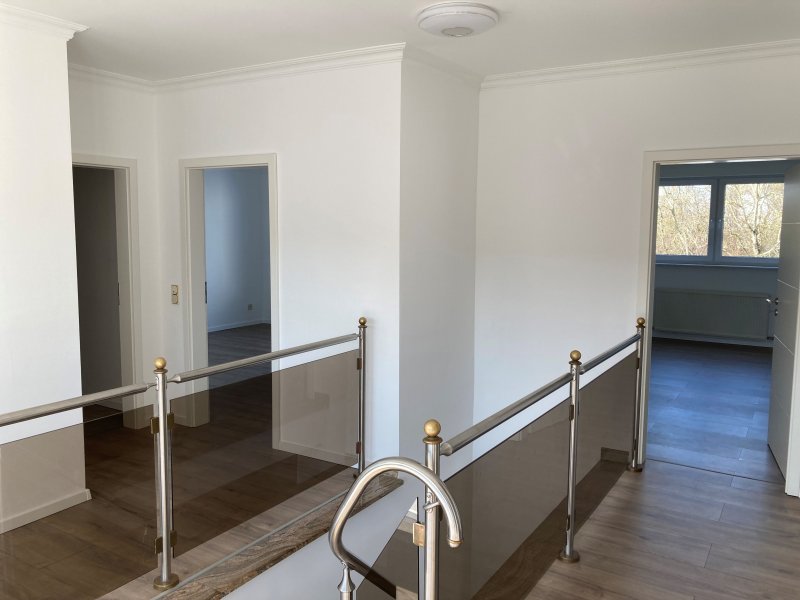 Große Fenster mit Sicherheitsglas und erhöhtem K-Wert, Fensterbänke von KG bis Speicher - Außen Granit, Innen Marmor, Innentreppe Multicollor Granit, Edelstahl Gelände - Sicherheitsglas Bronze, hochwertige Armatur usw.….