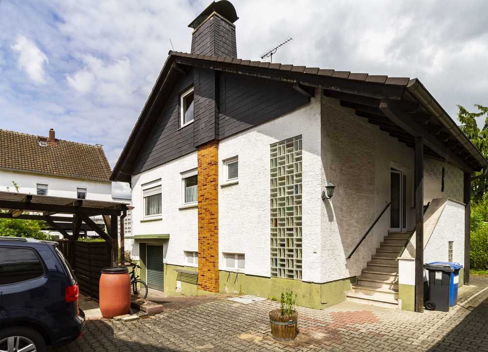 Bei diesem Einfamilienhaus aus dem Baujahr 1966 in schöner ruhiger Lage von Erzhausen wurde 1982/83 das Dach als Satteldach ausgebaut, damit entstand große Speicherfläche im Dachgeschoß. Über die Zufahrt erreicht man die im Kellergeschoß des Hauses integrierte Garage, die Lager- und Funktionsräumen sowie den Hauseingang, der im Hochparterre liegt. Das Wohngeschoß wird durch eine helle Diele mit Stauraum erschlossen und führt direkt ins große Wohn-/Esszimmer mit einer vorgelagerten West-Terrasse über die gesamte Hauslänge. Das Schlafzimmer hat ebenfalls Zugang zur Terrasse. Hinter dem Haus befinden sich ein Freisitz, ein Gartenhaus und ein großer Garten. Die Immobilie hat Renovierungsbedarf im Kellergeschoß und bei der Heizung und eignet sich mit dem aktuellen Platzangebot für eine kleine Familie.