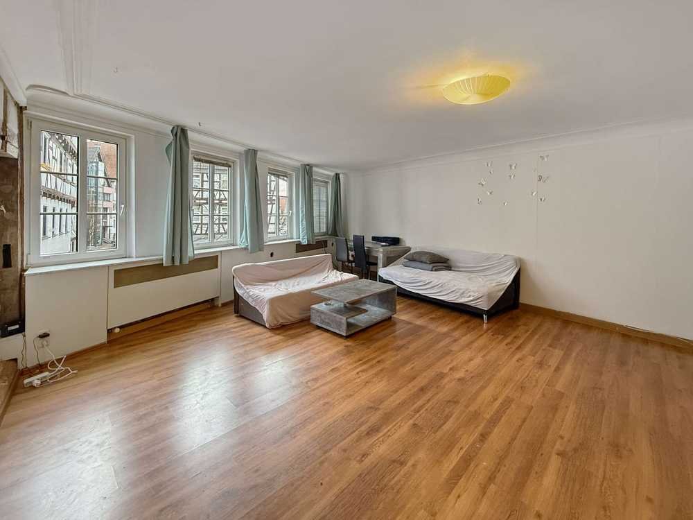Zum Verkauf steht eine 3-Zimmer-Wohnung im 1. Obergeschoss eines denkmalgeschützten Mehrfamilienhauses am Marktplatz in Leonberg.