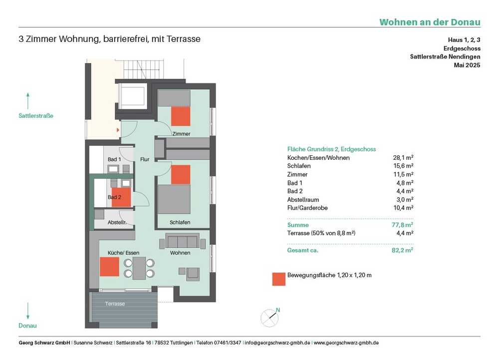 In Tuttlingen-Nendingen bauen wir drei Wohnhäuser mit verbindender Tiefgarage und einen vorgelagerten Gewerbebau, der zur Straße abriegelt. Die Wohngebäude stehen also geschützt der Donau zugewandt, das großzügige Gelände bietet Familien viel Freiraum, die Donau Abenteuer pur.
