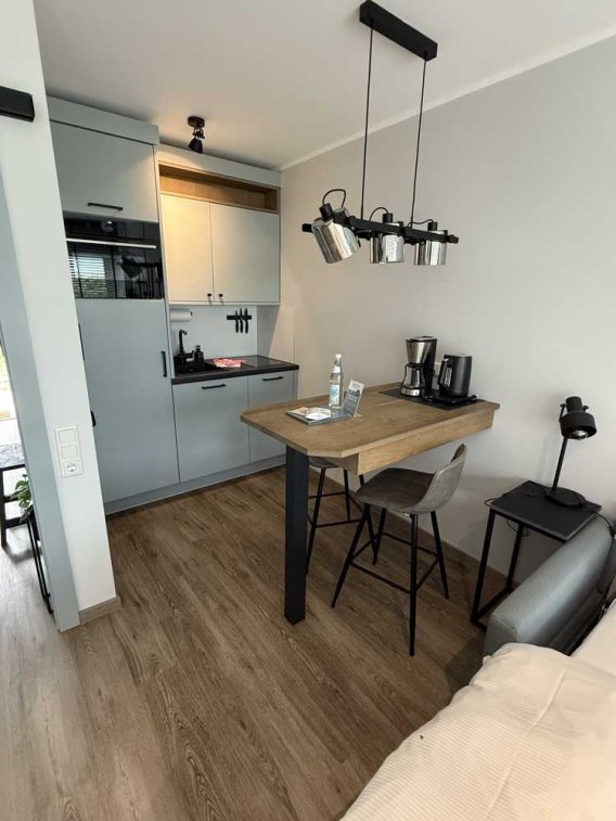 Bei dieser ansprechenden Immobilie handelt es sich um eine Erdgeschosswohnung, die durch eine gehobene Innenausstattung besticht (Tresen im Industrial-Style, Tischlereinbauten für Stauraum, neuwertige Einbauküche mit Markengeräten und ein helles Duschbad) und außerdem über eine schöne Terrasse mit Gartenanteil und einen PKW-Stellplatz verfügt.