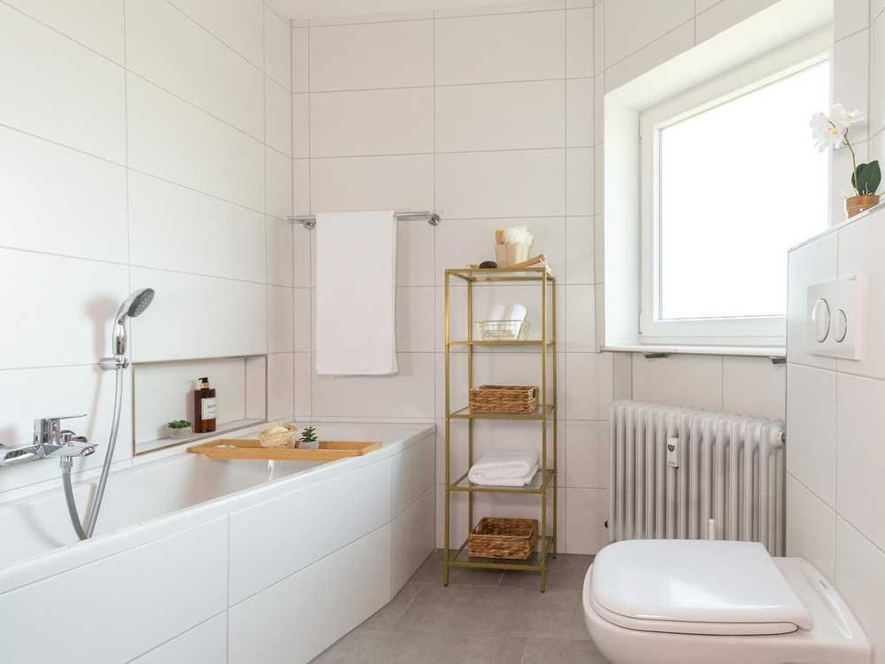 - Bad vollständig saniert: stilvolle Ausstattung mit einer großzügigen Duschkabine (mit Regendusche und Wandnische), Badewanne ebenfalls mit Wandnische, Wand-WC und Waschbecken mit beleuchtetem Spiegelschrank