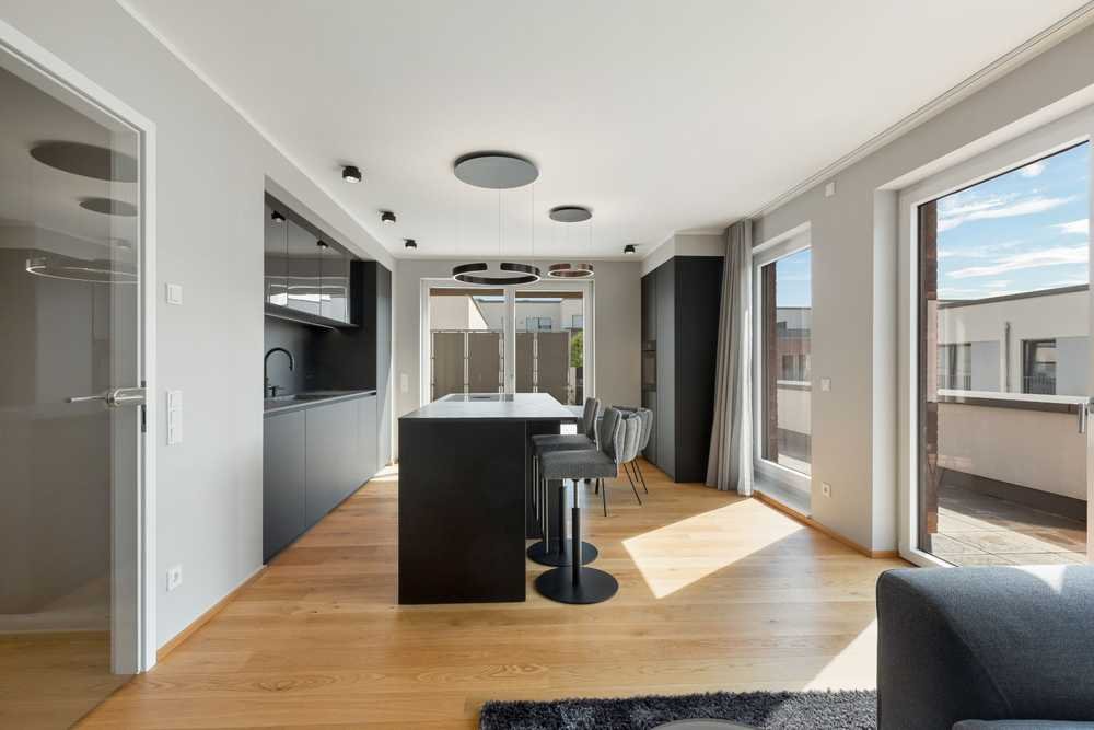 Die hochwertigen Eichenholzdielen verleihen den Wohnräumen eine zeitlose Eleganz, während die exklusive Ausstattung mit Schmalenbach Design Interior und Occhio Design-Leuchten, die sich harmonisch durch die gesamte Wohnung zieht, stilvolle Akzente setzt. Dank der 3-fach-Verglasung genießen Sie eine angenehme Ruhe, während die Fußbodenheizung für ein behagliches Wohnklima in jedem Raum sorgt.